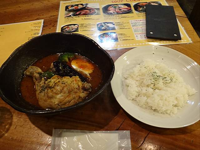 スープカレー、真ん中のは鶏肉の足ほぼ半身