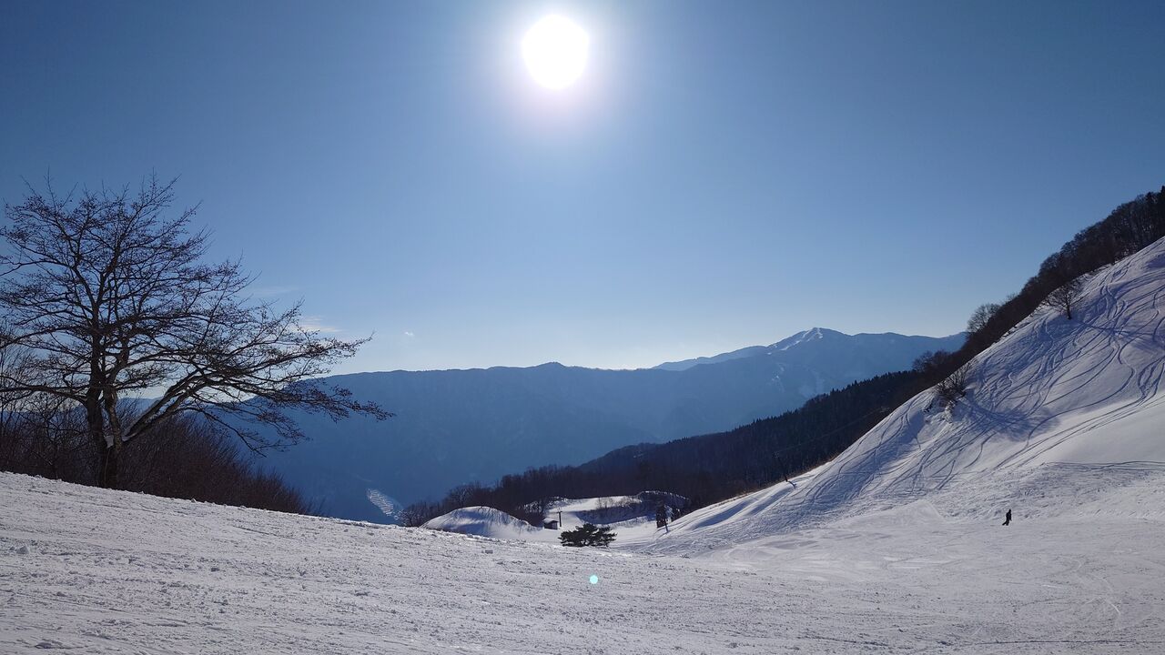快晴、とても暑い、1日しか降ってないはずなのに思ったより雪があった